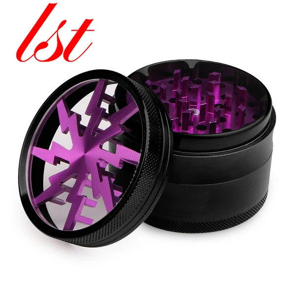Лучший Купить ТРАВЫ ШЛИФОВ 4 частей 2.5 дюймов Алюминий Табак Grinder Дробилка дым измельчители с пыльцой зрелище и Пыльца скребок (черный + фиолетовый) дешево