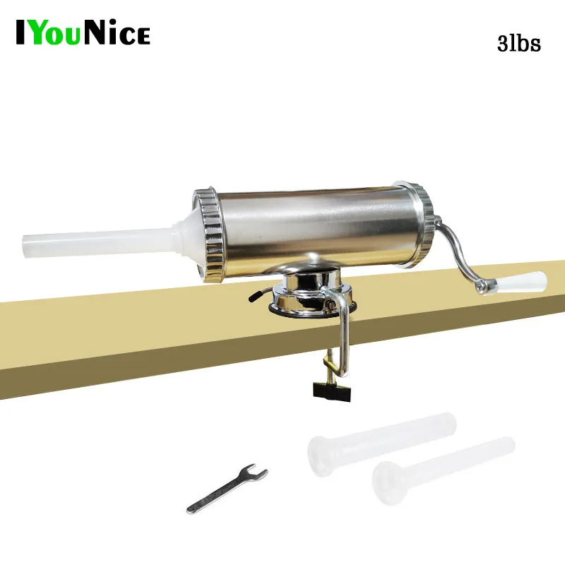 Лучший продажа 3lbs 1.35L дропшиппинг с ручным управлением фарша писака самодельный ручной Алюминий колбаса наполнителю мясорубку дешево