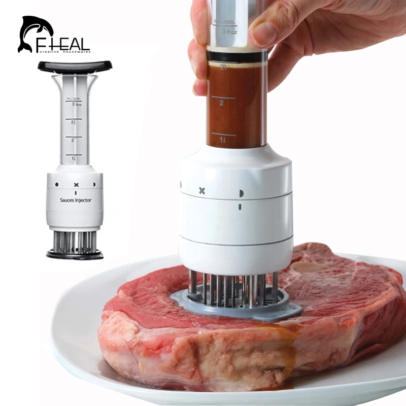Лучший Купить FHEAL нержавеющая сталь Мясо Tenderizer иглы и мясо инжектор маринад вкус шприц кухня инструменты дешево