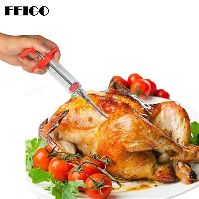 Лучший продажа Дома Высокое качество творческой мясо маринад инжектор вкус шприц Пособия по кулинарии мяса птицы Турции куриное барбекю инструмент Рожде... дешево
