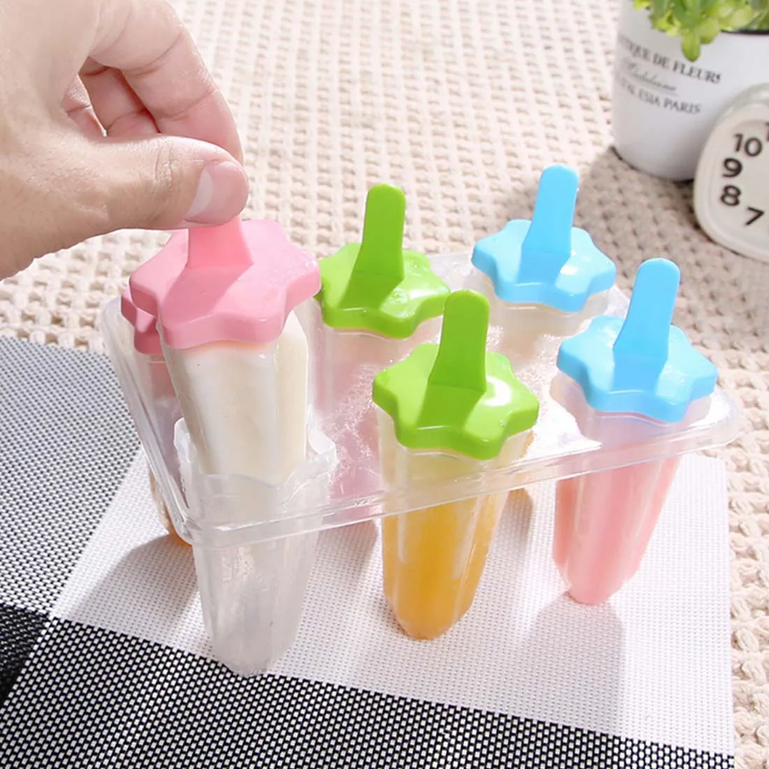 Купить дешевый 6 отверстий полезные DIY Мороженое Инструменты Lolly Плесень лоток Пан Пособия по кулинарии случайно цвет ледяной куб формы Popsicle чайник инструм... онлайн