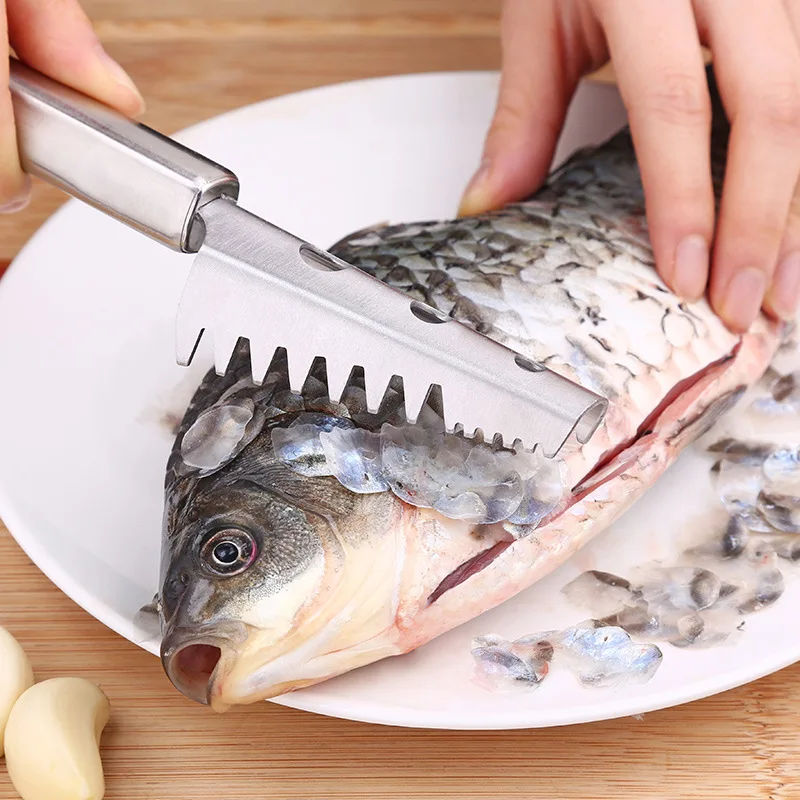 Купить дешевый Нержавеющая сталь мясные инструменты рыбные чешуи скребок морепродукты инструменты Рыбная кожа щетка быстрая удаляющая рыба чистилка Цена
