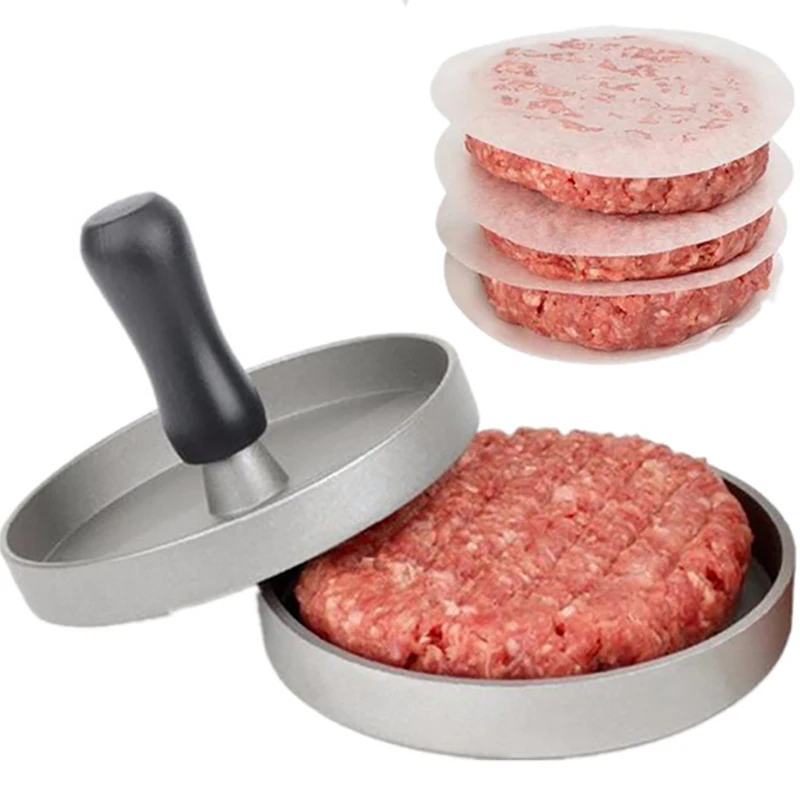 Хорошо продажа 1 компл. круглый Форма гамбургер Пресс Алюминий сплав 12 см гамбургер мяса говядины Гриль Burger Пресс Пэтти чайник Плесень дешево