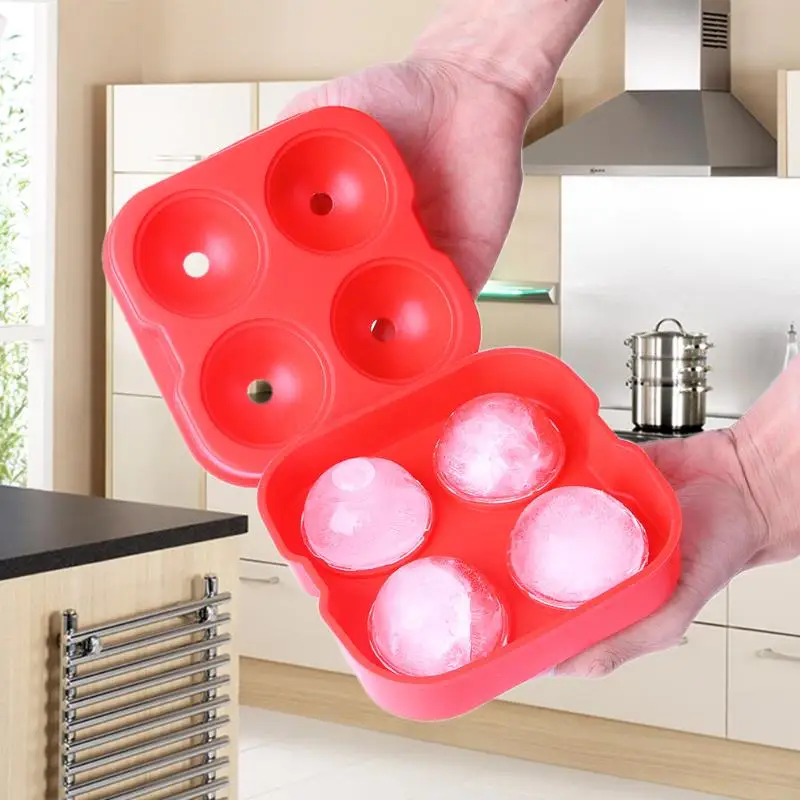 Хорошо продажа 4 отверстия Силиконовые Ice Cube чайник большой шар льда Мороженое Mold Бар Кухня инструмент дешево