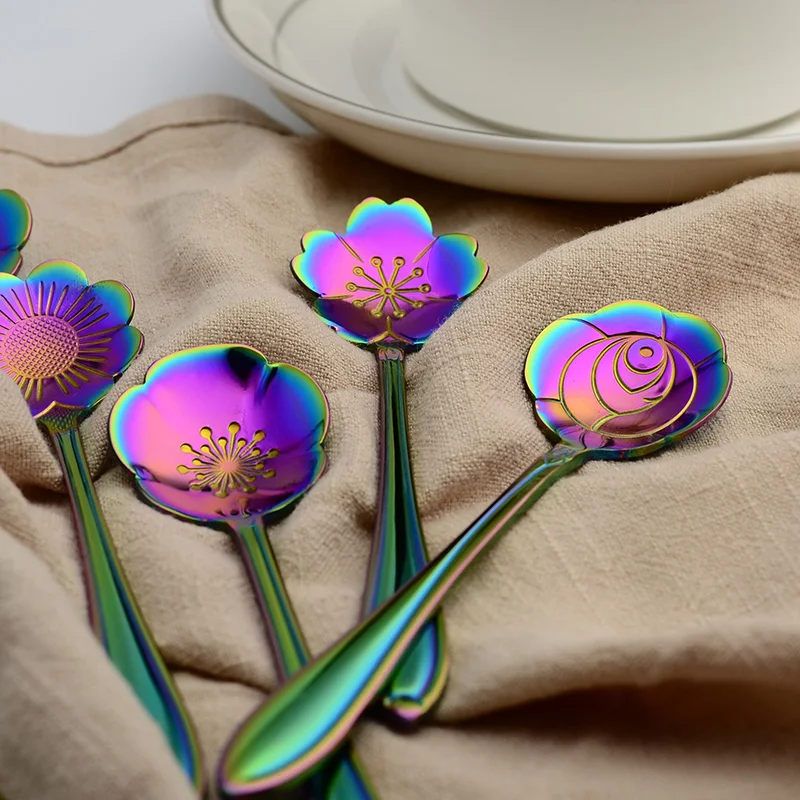 Купить дешевый 8 шт. компл. Нержавеющая nbsp;сталь цветок Форма ложка творческий Малый Чай Кофе сахар, мороженое ложки Элегантный комплект посуда Кухня инструм... Цена
