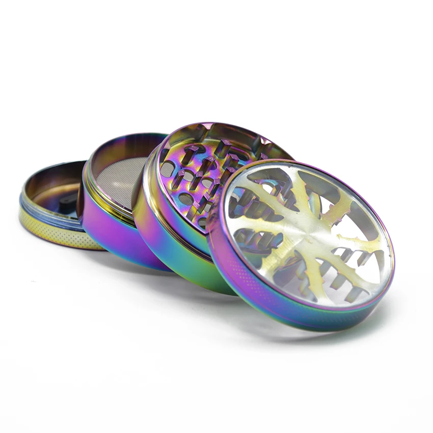 Хорошо продажа Хорошее качество Радуга Цвет Lightning травы Шлифовальные станки металлический сплав цинка 4 слоя для дробилка трубы аксессуары табака Шлифова... дешево